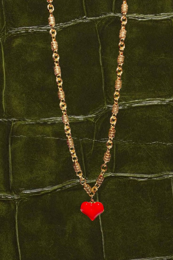 Sur la chaîne Aura en finition or 18 carats, un généreux pendentif cœur en émail rouge vient illuminer ton look et révéler ton style.