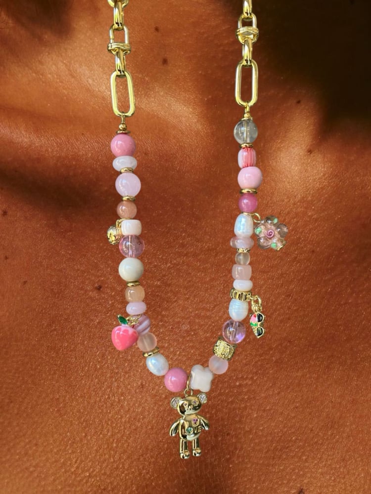 Pour un déjeuner au restaurant, une journée au bureau ou une soirée entre amis, le Collier Pink Teddy est l’accessoire parfait pour rayonner avec audace.